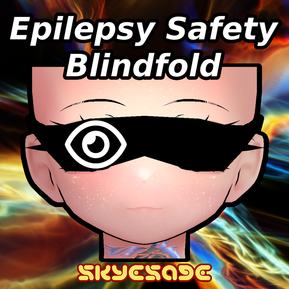 This is a blindfold intended for those with photosensitive epilepsy. It turns your local screen completely black via a toggle, allowing you to protect yourself in the event that you run into a trigger while in VRChat. All of the customization toggles for the blindfold are local to you, so anybody that gets close to your face won't see what you see. There are also additional features to make any transparent effects invisible from your local view and limit the brightness of the things around you!